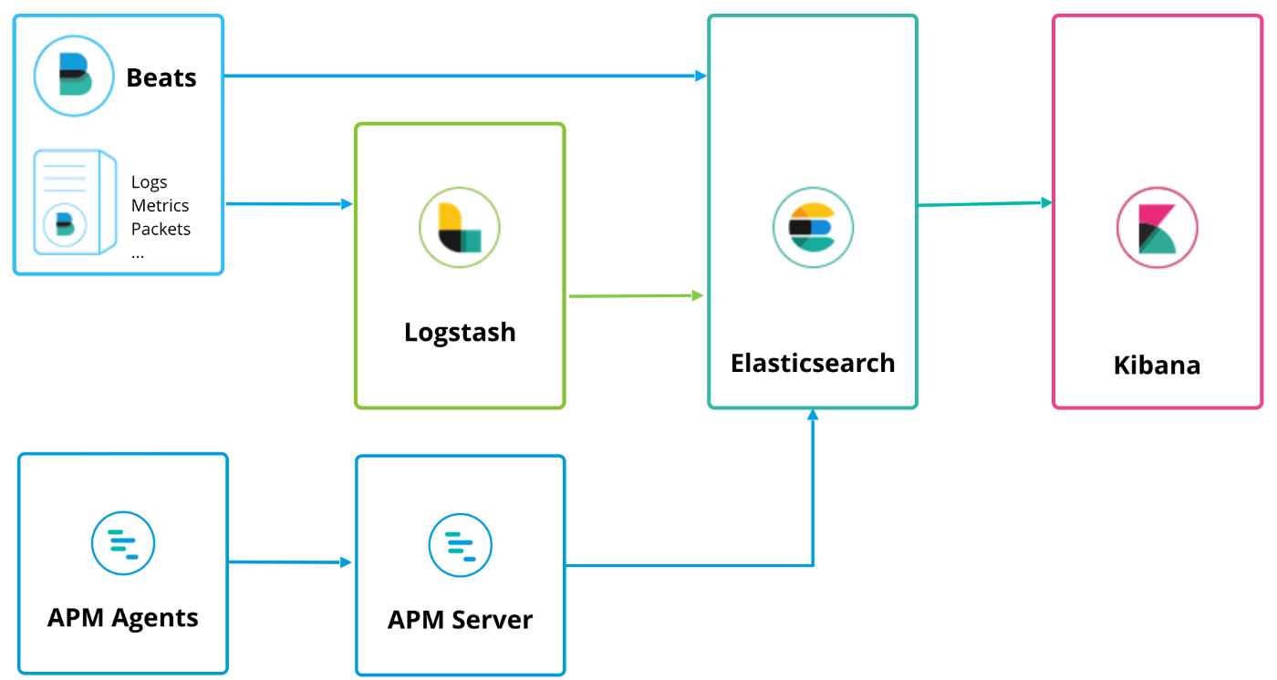 로그 파일 및 지표에 대한 비트만 사용됨 모든 로그와 지표는 이 리포지토리에서 직접 elasticsearch로 전달됨 2x Elasticsearch, 1x apm-server 및 1x Kibana가 사용됨 | 수집 노드가 사용되지 않음 |