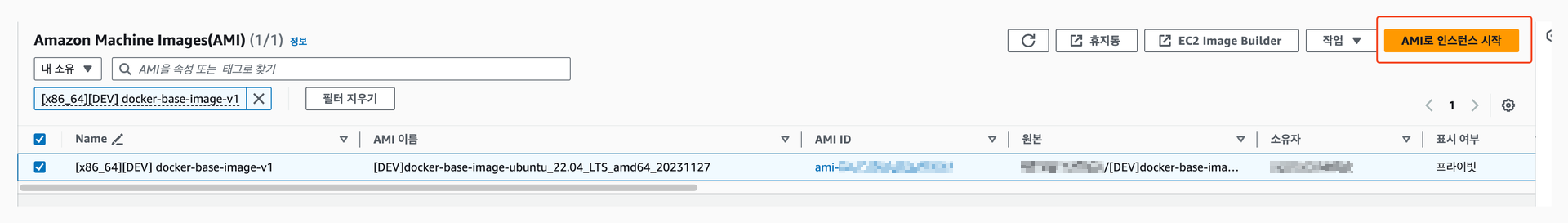 [x86_64][DEV] docker-base-image-v1AMI로 인스턴스 시작 클릭