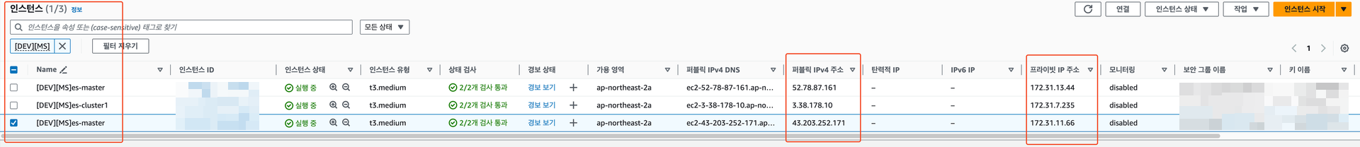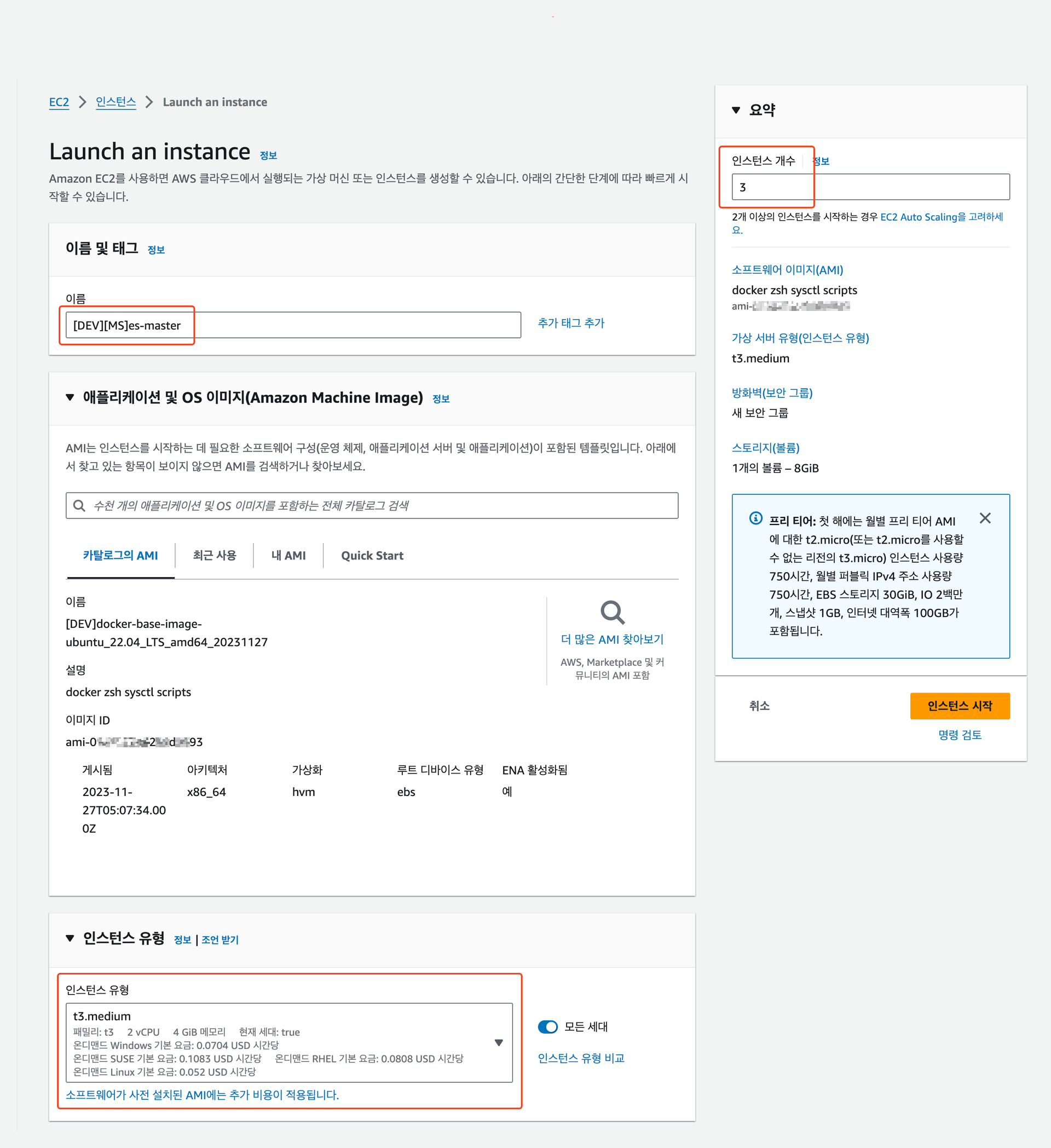 [DEV][이니셜]es-master, 인스턴스 유형t3.medium, 인스턴스 개수3개