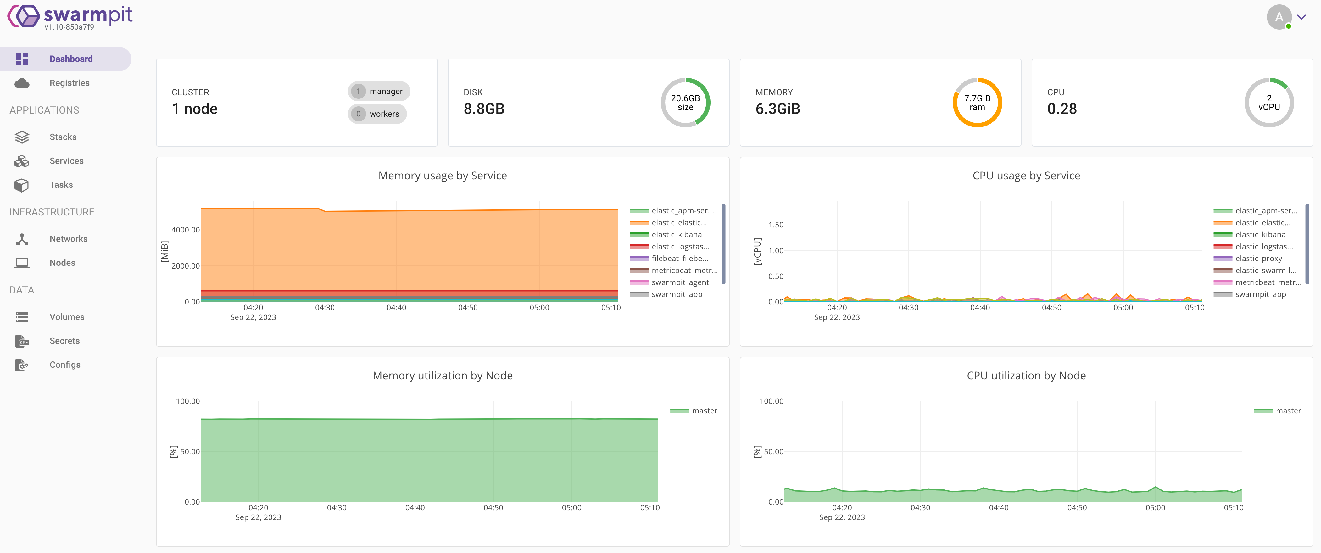 9200: Elasticsearch HTTP8200: Apm Server HTTP80: Kibana888: Swarmpit (모니터링 및 Docker Swarm 관리)