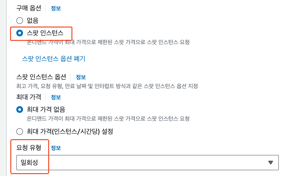 구축 테스트 용만 비용 절감 차원에서스팟 인스턴스로 진행