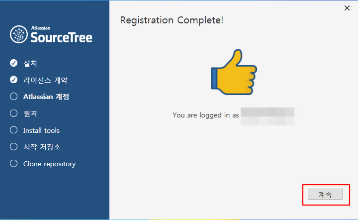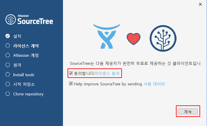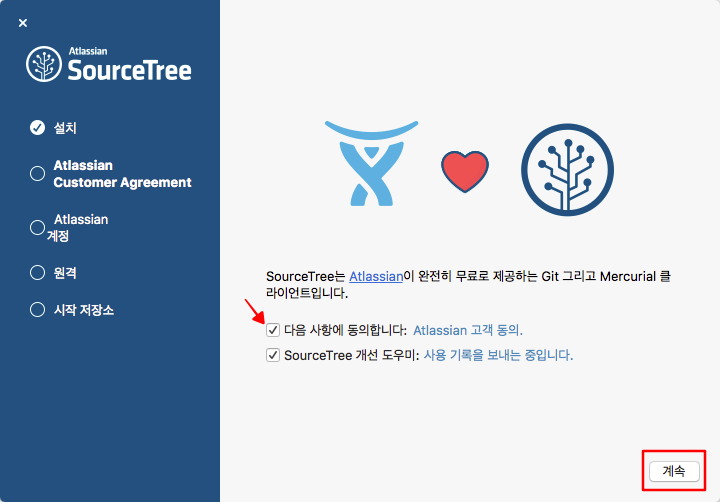 - 다음 사항에 동의합니다에 체크, 계속 클릭