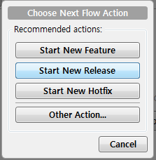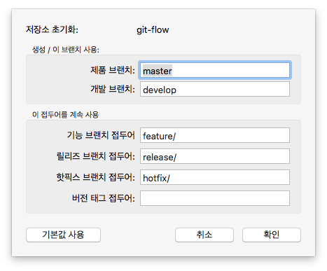 - Git flow 버튼에서 새 릴리즈 시작 클릭