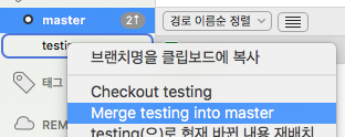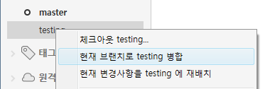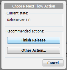 - 릴리즈 브랜치에 대한 검증이 완료되었다면 Git Flow의 릴리즈 마무리를 클릭합니다.