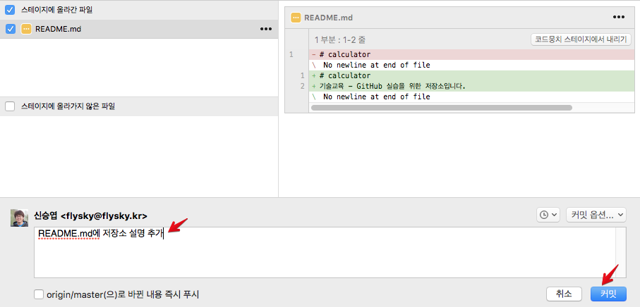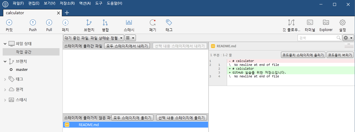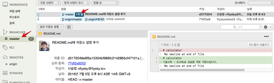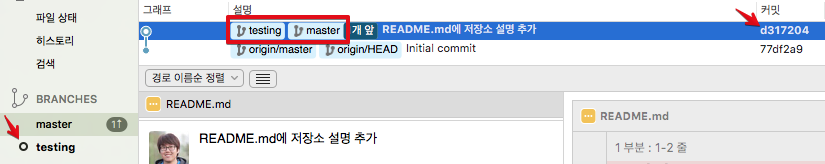 주의 충돌은 뒤에 알아봅니다. 충돌이 발생하지 않도록 동일한 라인을 수정하지 마세요.