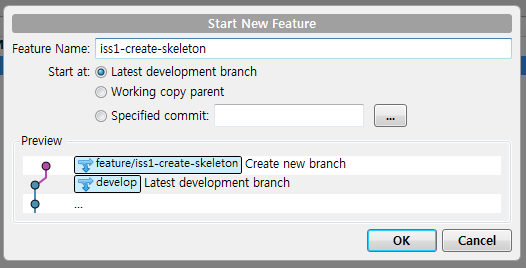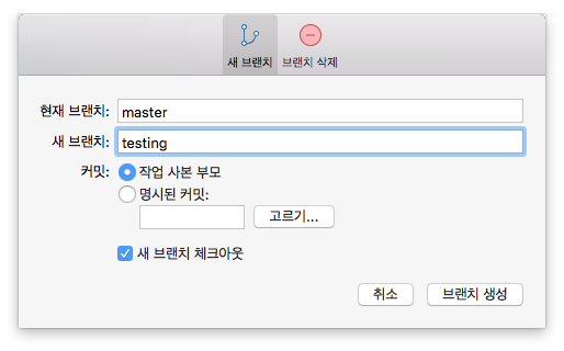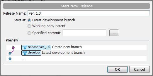 - 적당한 이름으로 릴리즈 브랜치를 생성합니다.