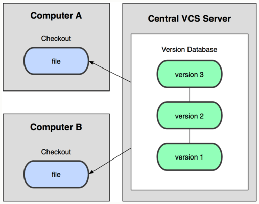- 중앙집중식 버전 관리 시스템(Centralized Version Control System; CVCS) 탄생