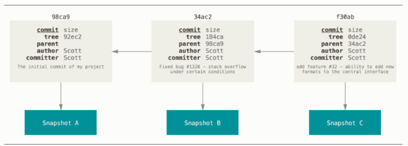 - Staging Area에 있는 파일들을 커밋해서 Git 디렉토리에 영구적인 스냅샷으로 저장