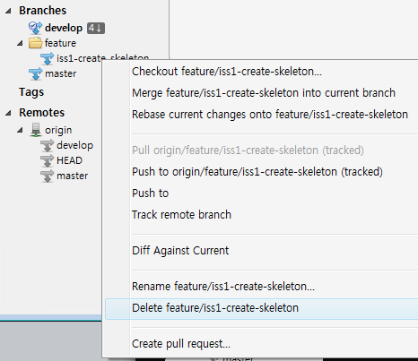 develop으로 체크아웃한 후 머지된 브랜치를 삭제합니다.