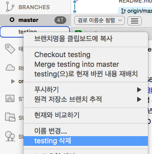 내 로컬 저장소에는 아직 원격 저장소과 로컬 저장소에 브랜치가 남아 있는 것으로 나옵니다.