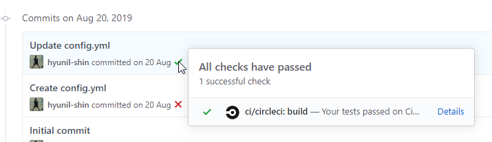 - github commit 정보에 빌드 결과가 추가됨